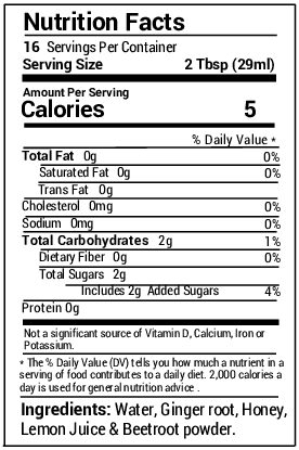 A Wellness Shot providing a healthy dose ginger and beetroot to boost your natural cardiovascular performance and improve stamina and endurance, in a convenient package. Take it straight or use to flavor your choice of beverage. Made with honey, it has less than 2 gm of carbs with only 5 calories per serving Subscription will automatically deliver (2) bottles of the product every 6 weeks. Contact hemi@sakuninc.com for subscription frequency of less than 6 weeks.