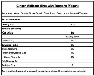 A vegan friendly Wellness Shot providing a healthy antioxidant and anti-inflammation dose from ginger in a convenient package. Helps improve natural immunity of the body to provide relief from various ailments. Take it straight or use to flavor your choice of beverage. Made with organic cane sugar, it has only 10 calories per serving. Size: 16 fl. Oz Item Id: GCB15-01 Makes (16) 1 oz. shots Save with a flat shipping rate
